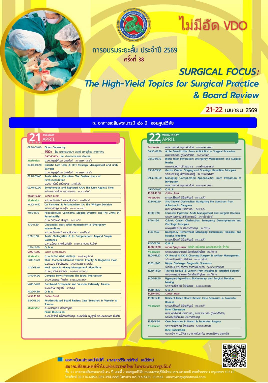 ารอบรมระยะสั้น ครั้งที่ 38 ประจำปี 2569 SURGICAL FOCUS: The High-Yield Topics for Surgical Practice & Board Review